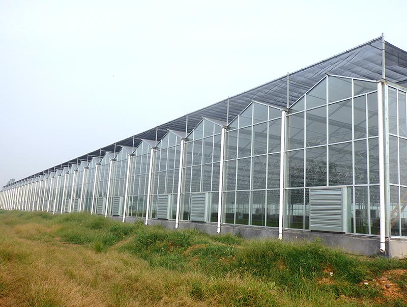 玻璃溫室通風(fēng)目的主要是為了排除溫室的余熱及溫室內(nèi)的水分, 調(diào)整溫室內(nèi)空氣成分, 排除有害氣體,使溫室內(nèi)的環(huán)境溫度、濕度和空氣等條件適宜植物生長(zhǎng)的要求。