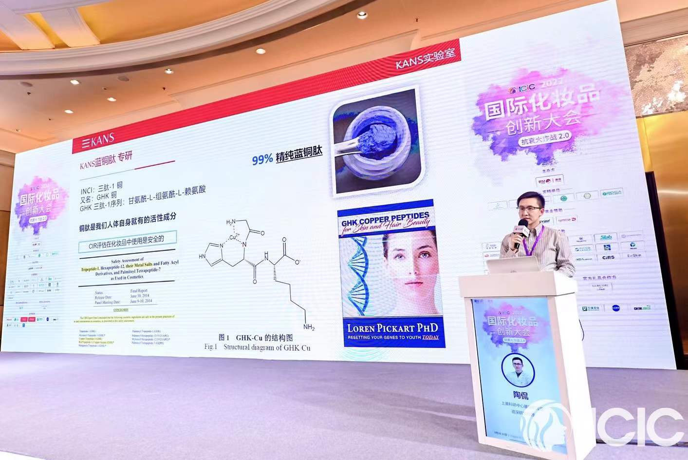 上美集團(tuán)韓束科研團(tuán)隊(duì)受邀參與大會(huì),與POLA、湃肽等企業(yè)亮相抗衰分會(huì)場,并做主題演講,分享TIRACLE PRO的最新基礎(chǔ)研究成果,以及與藍(lán)銅肽復(fù)配進(jìn)行產(chǎn)品開發(fā)。