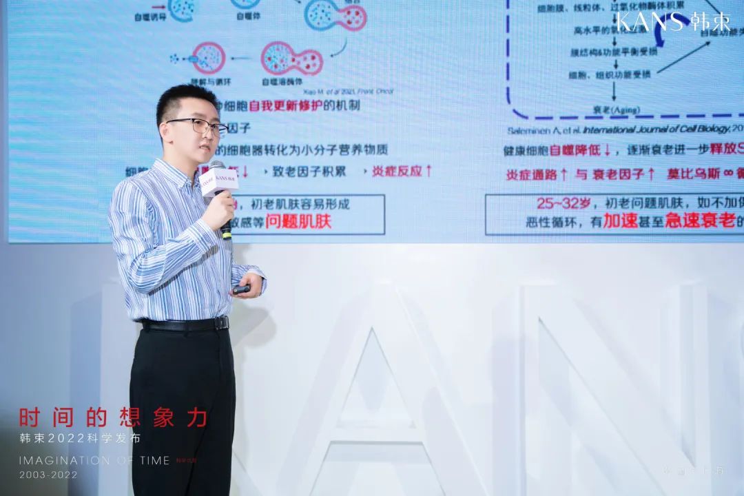 會議現(xiàn)場,上美集團研發(fā)副總裁特別助理陶侃也詳細介紹了韓束藍銅肽系列背后的研發(fā)故事。