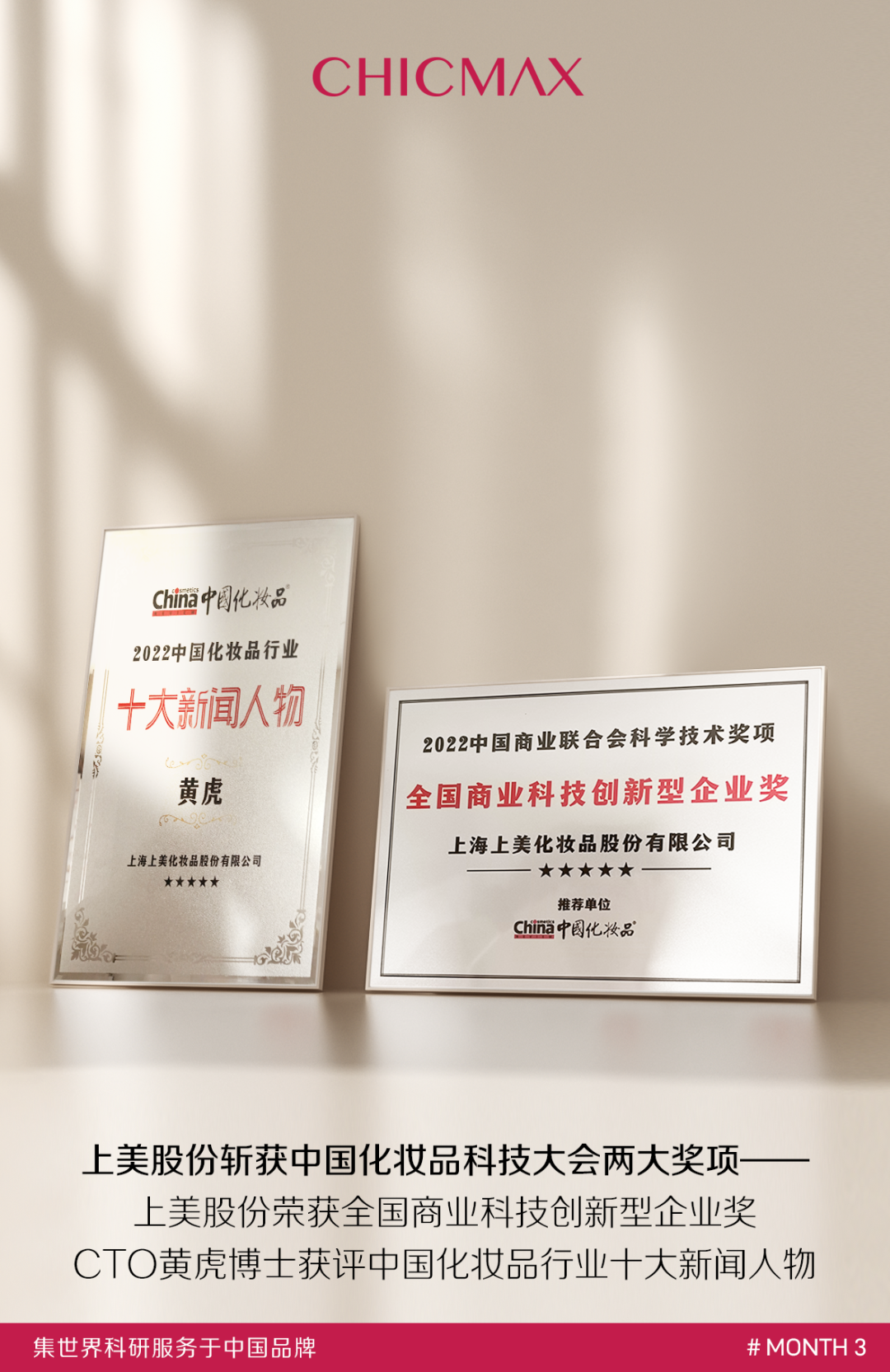 今天,中國化妝品科技大會在北京中國科技會堂隆重舉行,兩項大獎花落上美——上美股份榮獲2022年度全國商業(yè)科技創(chuàng)新型企業(yè)獎,CTO兼全球首席科學(xué)家黃虎博士獲評2022年度中國化妝品行業(yè)十大新聞人物。