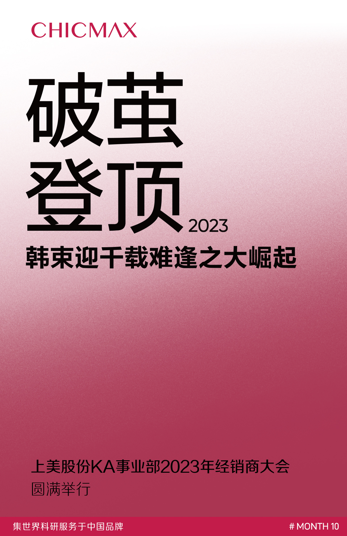 10月30日,上美股份KA事業(yè)部2023年經(jīng)銷商大會在上美科技園正式拉開序幕。本次大會主題為“破繭登頂 韓束迎千載難逢之大崛起”,來自全國各地的KA渠道經(jīng)銷商歡聚一堂,共同聆聽和探討上美在KA渠道探索出的新機遇、新模式與新商機。