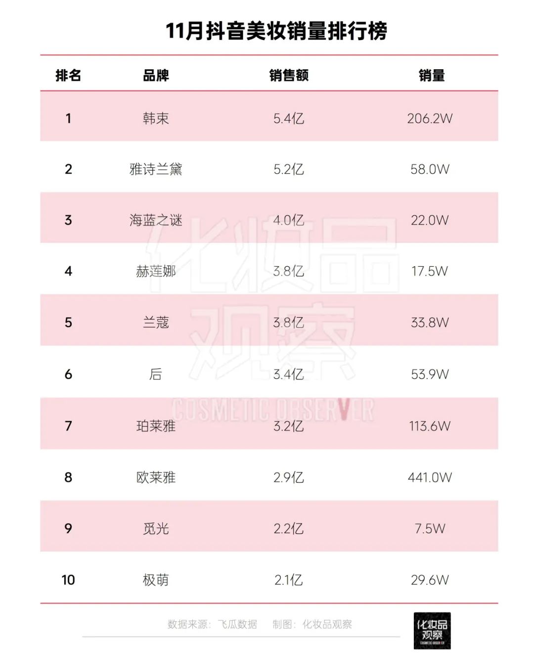 渠道創(chuàng)新維度,構(gòu)建全鏈路閉環(huán)打法,尋求新增長。目前,韓束已登頂抖音美妝類目。據(jù)飛瓜數(shù)據(jù),韓束獲得11月抖音美妝品牌總榜TOP1,銷售額達5.4億元。同時,在2023年1-11月,韓束抖音累計GMV也位居美妝品類第一,累計銷量額達28.5億元。