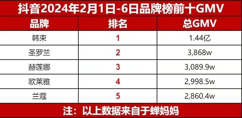 蟬媽媽數(shù)據(jù)顯示,1月,韓束總GMV高達(dá)7.73億元,位列抖音美妝排名榜首,取得斷層式領(lǐng)先;該成績(jī)不僅是歐萊雅的近4倍,更創(chuàng)下韓束單月抖音GMV新高、抖音美妝行業(yè)單月GMV新紀(jì)錄。