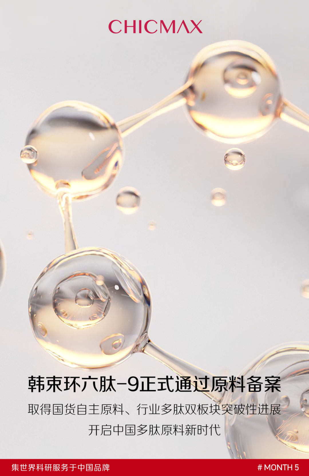 同時,環(huán)六肽-9也是功效護膚領域,全球首個品牌自研的環(huán)肽,實現(xiàn)了分子生物學最優(yōu)結構,開啟了國內美妝企業(yè)自主科研創(chuàng)新的新高度。