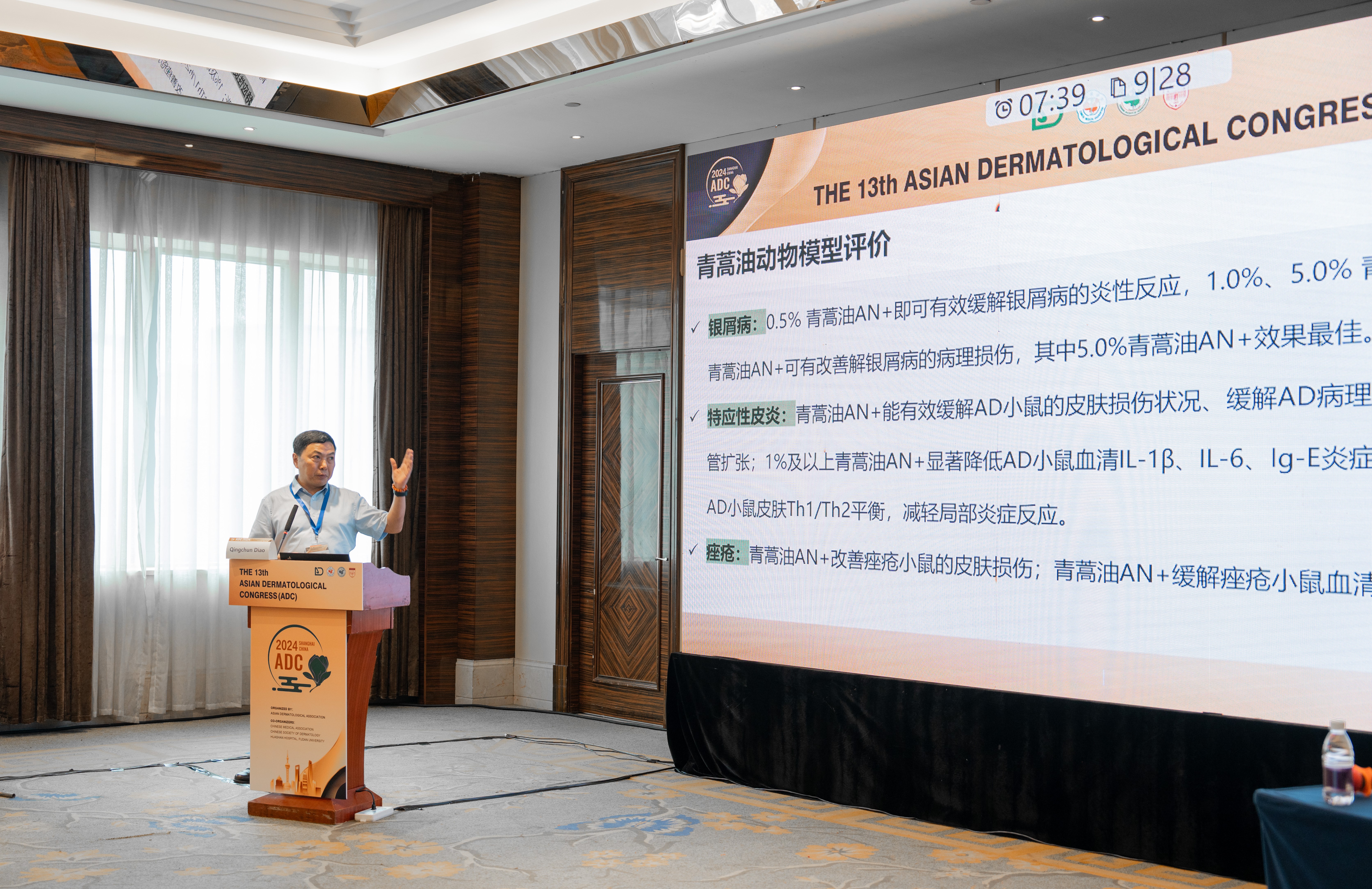 午間專題會(huì)現(xiàn)場(chǎng),重慶市中醫(yī)院皮膚病研究所首席特聘專家刁慶春主任分享了《含青蒿油的潤(rùn)膚劑在敏感皮膚的臨床應(yīng)用研究》的主題演講,從臨床醫(yī)學(xué)和學(xué)術(shù)研究的專業(yè)角度,全面解析了上美另一自主科研成分“青蒿油AN+”在敏感肌膚護(hù)理上的強(qiáng)大功效。