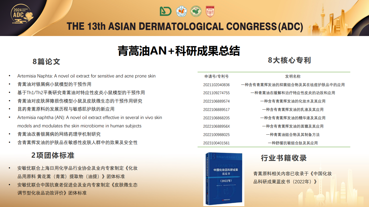 本次亞皮會(huì),上美股份展示了基于21年對(duì)亞洲人皮膚特性的洞察與研究而開發(fā)出的兩大自主原料——環(huán)六肽-9和青蒿油AN+,并分享了這兩大原料在抗衰和敏感肌護(hù)膚方面運(yùn)用的最新數(shù)據(jù)成果。