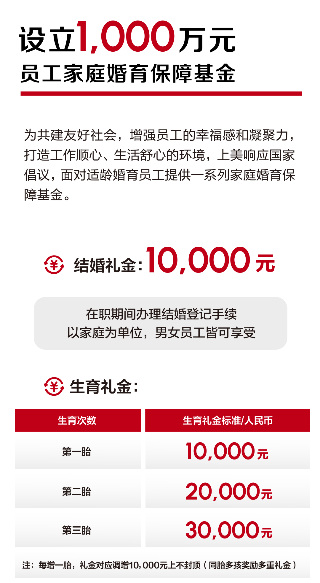 今年3月,上美特別設(shè)立了1,000萬元員工家庭婚育保障基金,為在職期間員工結(jié)婚或生育提供多重補貼,為女性員工在職場的可持續(xù)發(fā)展提供了切實的保障。