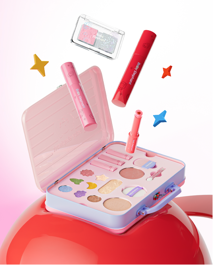 目前,紅色小象在售的有彩妝禮盒、甜心精華口紅、水性可剝指甲油、奇趣幻彩棒、雙色眼影共5款兒童彩妝產(chǎn)品,從生產(chǎn)到測試的全流程,都做到了安全純凈,科學專業(yè)。