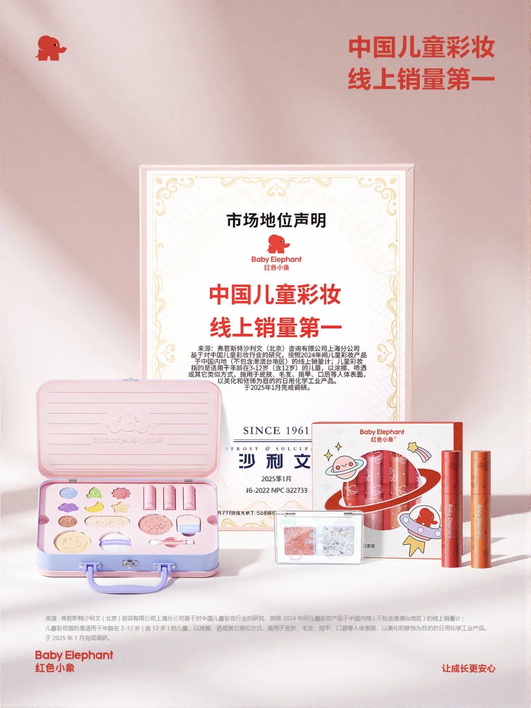 根據(jù)沙利文調(diào)研:基于對中國兒童彩妝行業(yè)的研究,按照2024年間兒童彩妝產(chǎn)品于中國內(nèi)地的線上銷量計,深入統(tǒng)計了2024年1月1日至2024年12月31日期間的兒童彩妝線上銷量,最終確認紅色小象為2024年中國兒童彩妝線上銷量第一的品牌:在2024年共計售出40.4萬件產(chǎn)品。