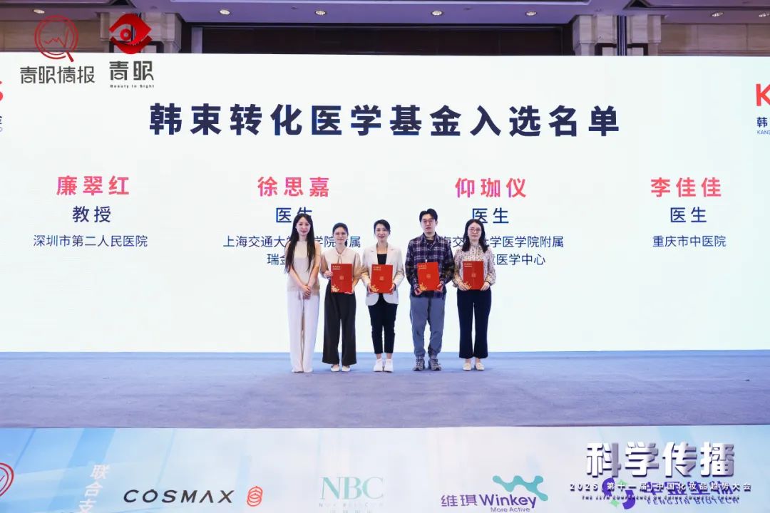 大會上,韓束轉(zhuǎn)化醫(yī)學(xué)基金公示儀式盛大啟動(dòng),開啟產(chǎn)學(xué)研深度融合新篇章。2024 年,“韓束轉(zhuǎn)化醫(yī)學(xué)基金” 應(yīng)運(yùn)而生,聚焦醫(yī)院皮膚科、高校及科研機(jī)構(gòu),致力于為具備前瞻性與應(yīng)用潛力的科研項(xiàng)目注入資金活力,加速科研成果向臨床應(yīng)用轉(zhuǎn)化,推動(dòng)美妝行業(yè)科研創(chuàng)新。