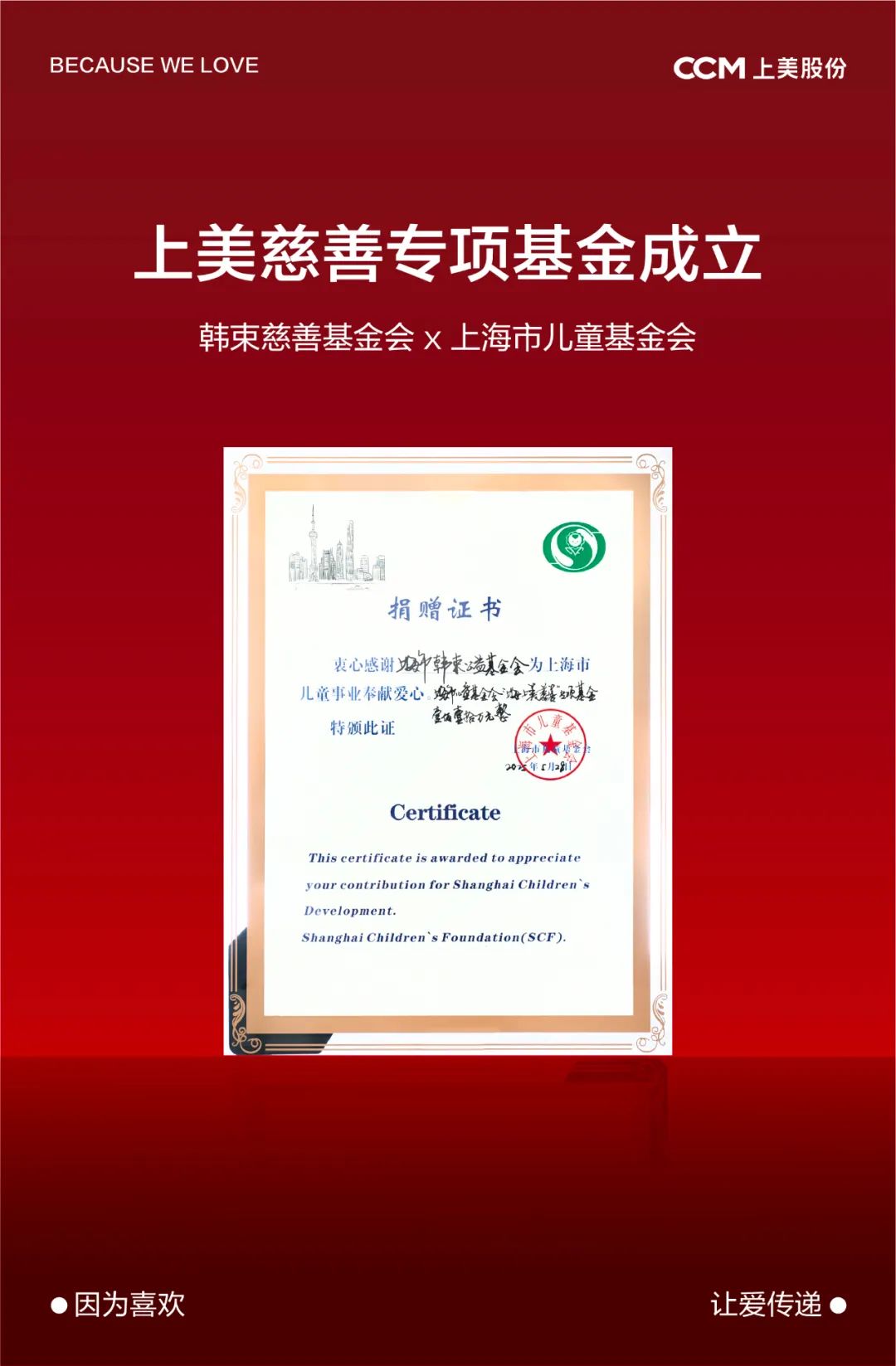 活動現(xiàn)場,上海市韓束公益基金會(以下簡稱“韓束基金會”)與上海市兒童基金會宣布達(dá)成深度合作,正式成立 “上美慈善專項(xiàng)基金”。