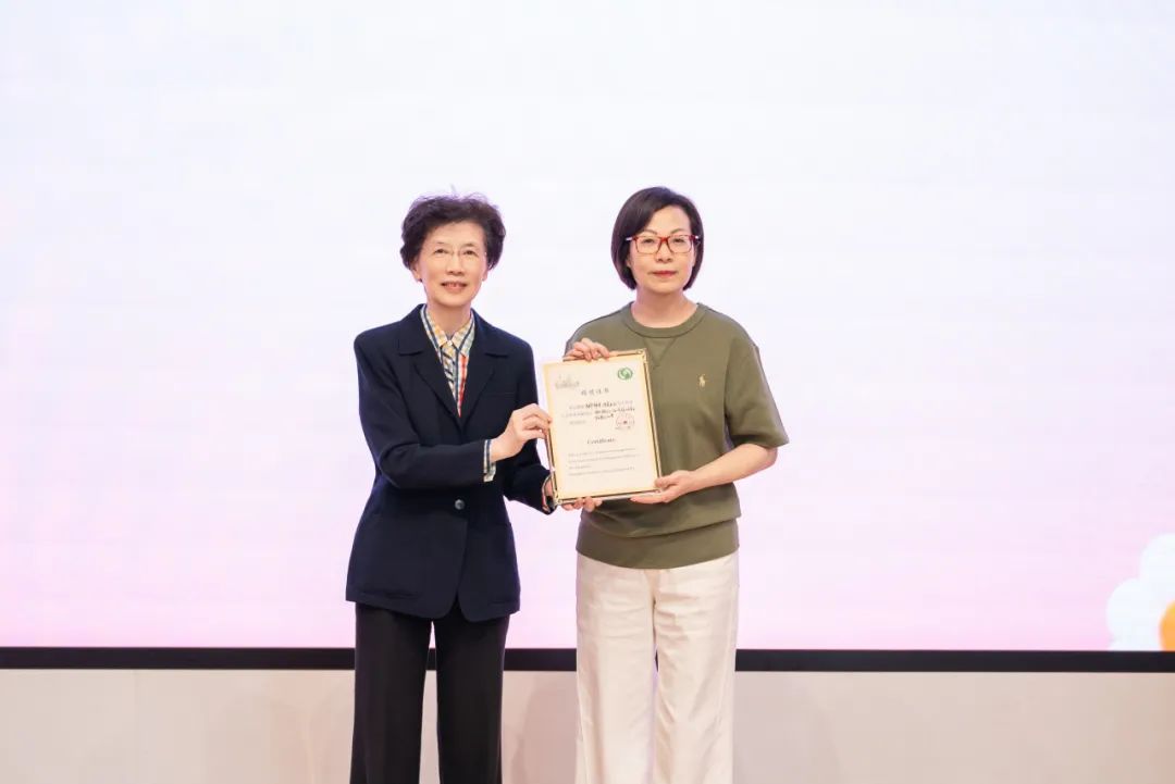 隨后,上海市兒童基金會榮譽(yù)理事長楊定華登臺為其頒發(fā)捐贈證書。