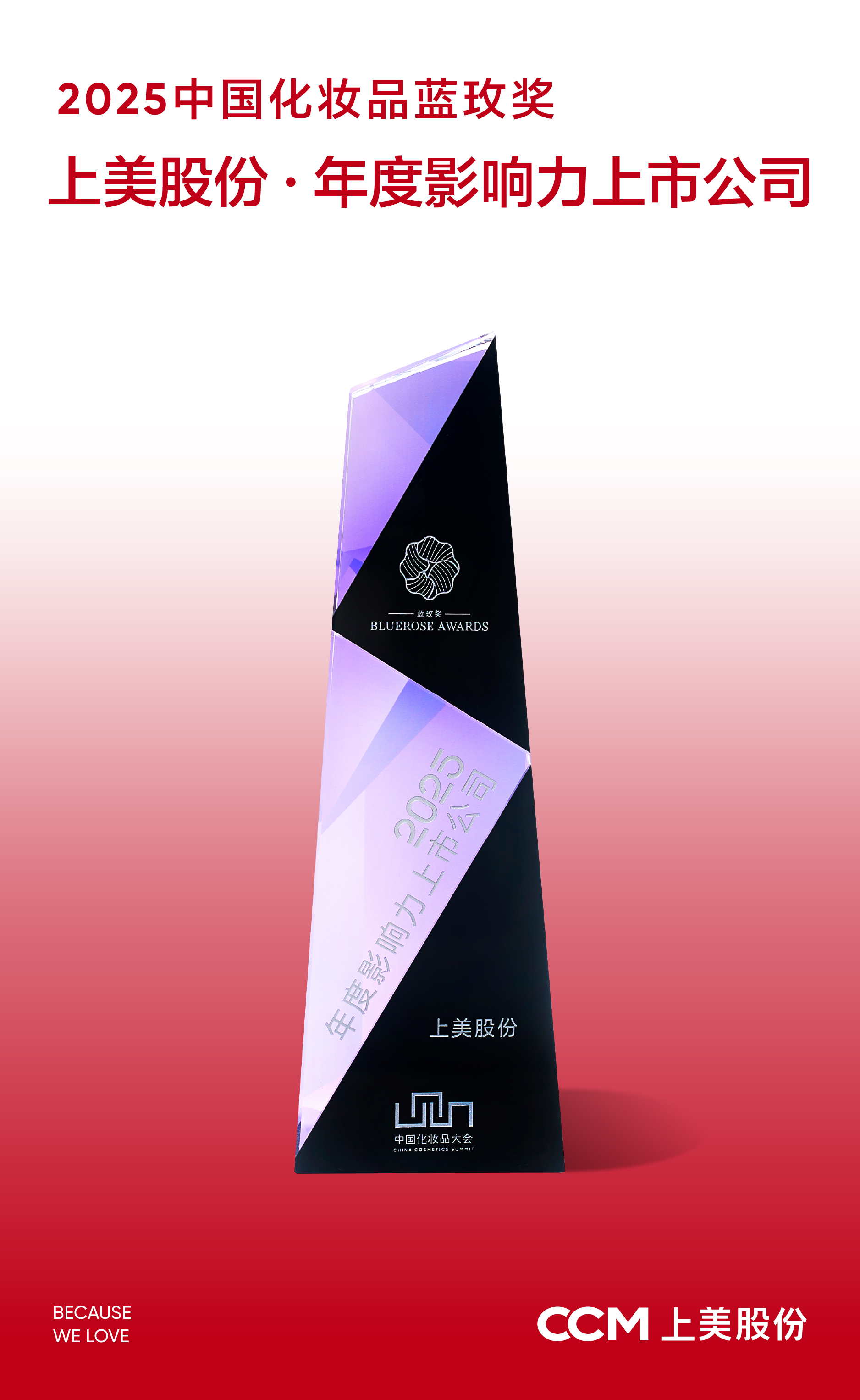 中國(guó)化妝品藍(lán)玫獎(jiǎng),是化妝品業(yè)內(nèi)公認(rèn)的最具含金量與影響力的權(quán)威獎(jiǎng)項(xiàng)之一,創(chuàng)立以來(lái),一直以持續(xù)推動(dòng)中國(guó)化妝品企業(yè)的發(fā)展和創(chuàng)新為己任。為上美頒發(fā)“年度影響力上市公司”獎(jiǎng),代表著化妝品行業(yè)對(duì)上美在過(guò)去3年創(chuàng)新突破的肯定,也是對(duì)上美未來(lái)發(fā)展的期待。