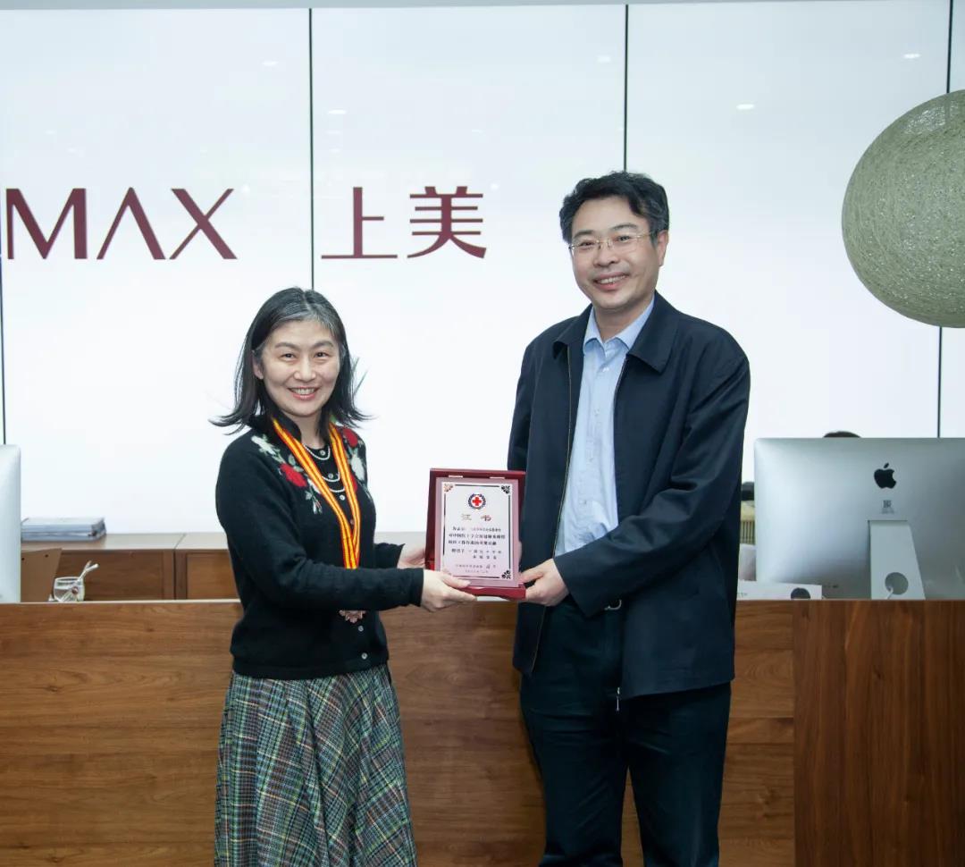 今日,中國紅十字會總會籌資與財務(wù)部部長王海濤一行到訪上美集團,為上美韓束公益基金會頒發(fā)紅十字會“奉獻獎”獎?wù)录白C書,表彰其在2020年對新冠肺炎疫情防控工作中作出的貢獻。韓束公益基金會副理事長李菲作為代表接受榮譽。
